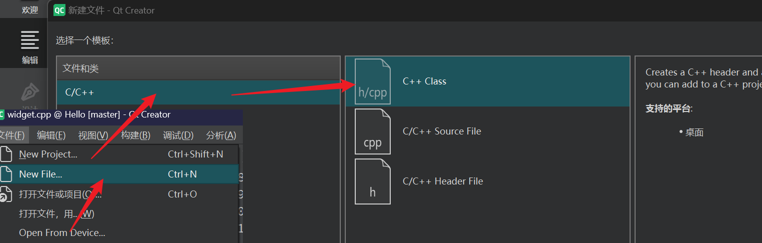 在一个QTCreator项目中可以在左上角添加新的控件类c++ class;