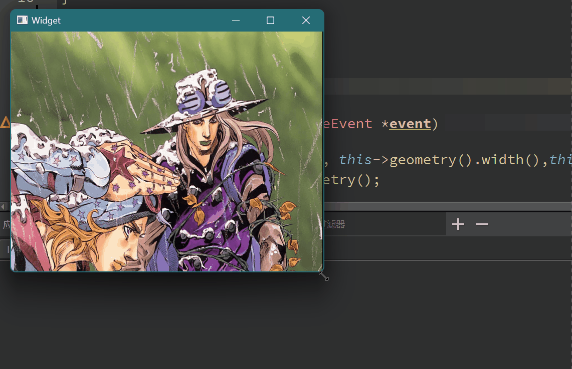 在这个事件函数中可以看到存在一个* event参数, 实际上不同的事件函数中都会有不同的事件参数, 可以看到实际上这个参数的类型是非固定的, 由于当前函数为resizeEvent, 因此对应的event事件参数为QresizeEvent, 同时也可以通过该参数来获取当前窗口的size;