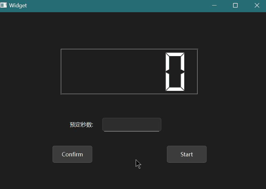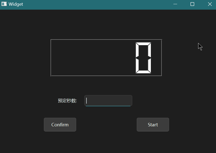 Start按钮被不断点击导致的延迟, 选择在按下Start按钮后禁用其他控件, 即将其他的控件的Enable状态设置为false;void Widget::on_start_clicked() { _time->start(1000); ui->confirm->setEnabled(false); ui->start->setEnabled(false); ui->nums->setEnabled(false); }对应的, 在时间为