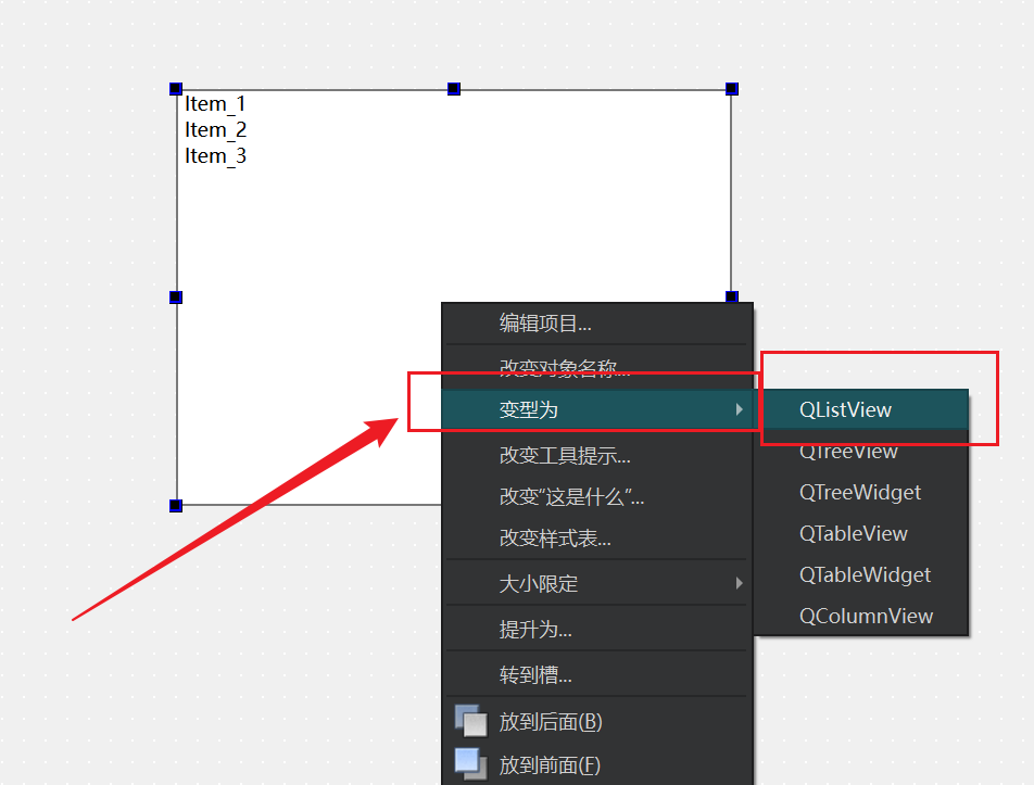 该控件有可以通过QListView使用"右键->变形为"的方式变为QListWidget;