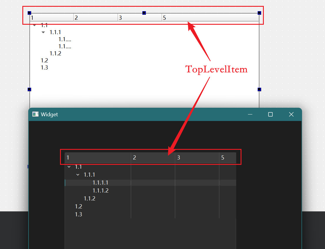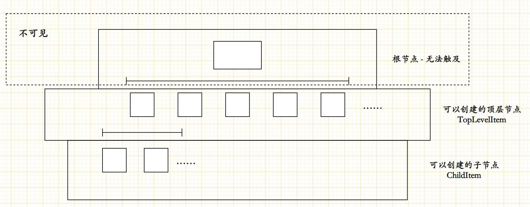 通常可以创建的是TopLevelItem, 与其的子节点ChildItem;