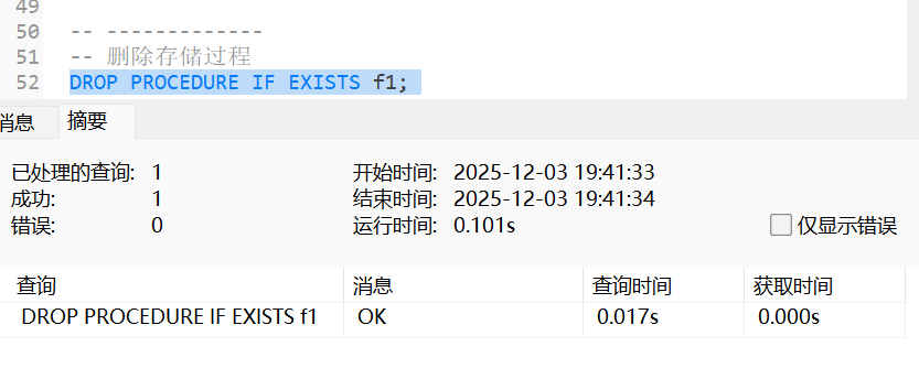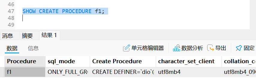 将参数配合4.1中的内容重新生成对应的存储过程, SQL代码为: