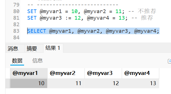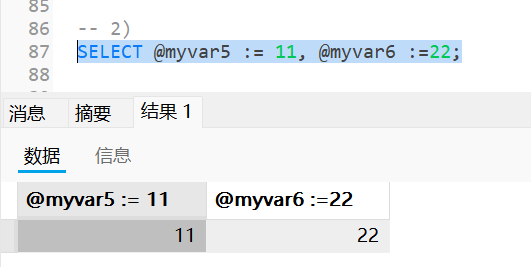 SET @inouttestval :=10;