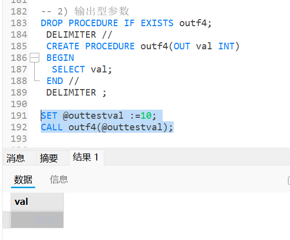 -- 2) 输出型参数