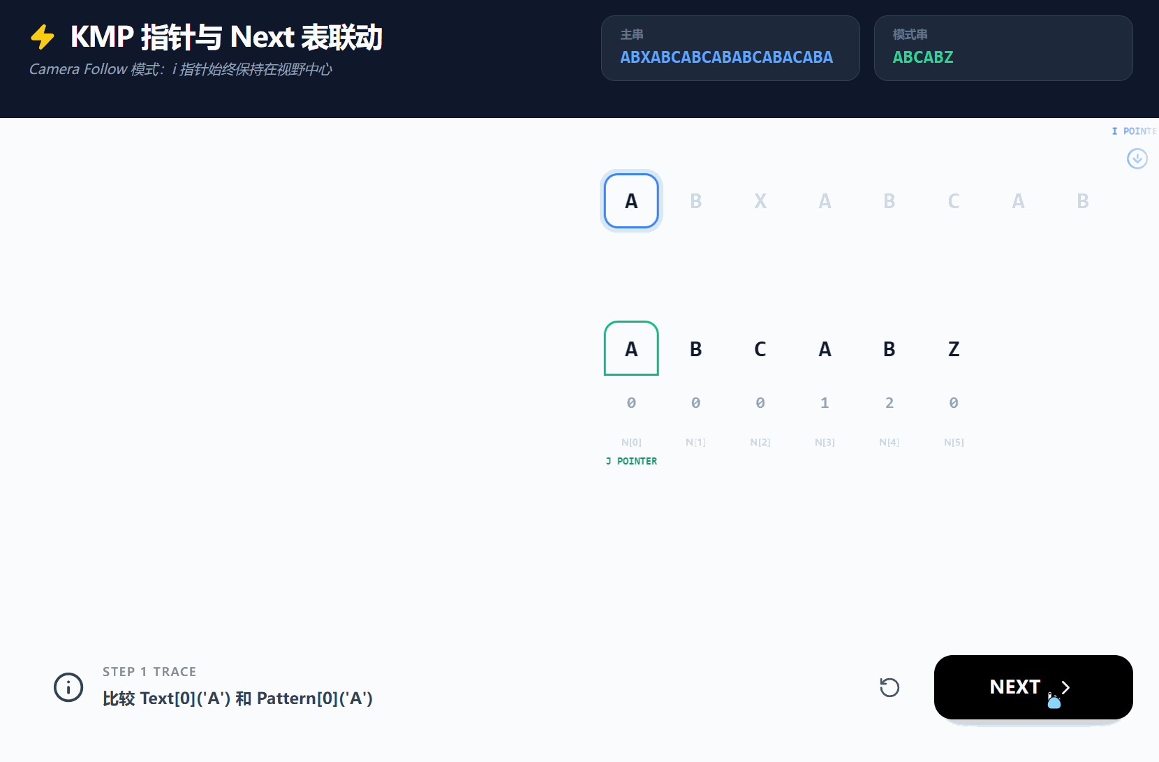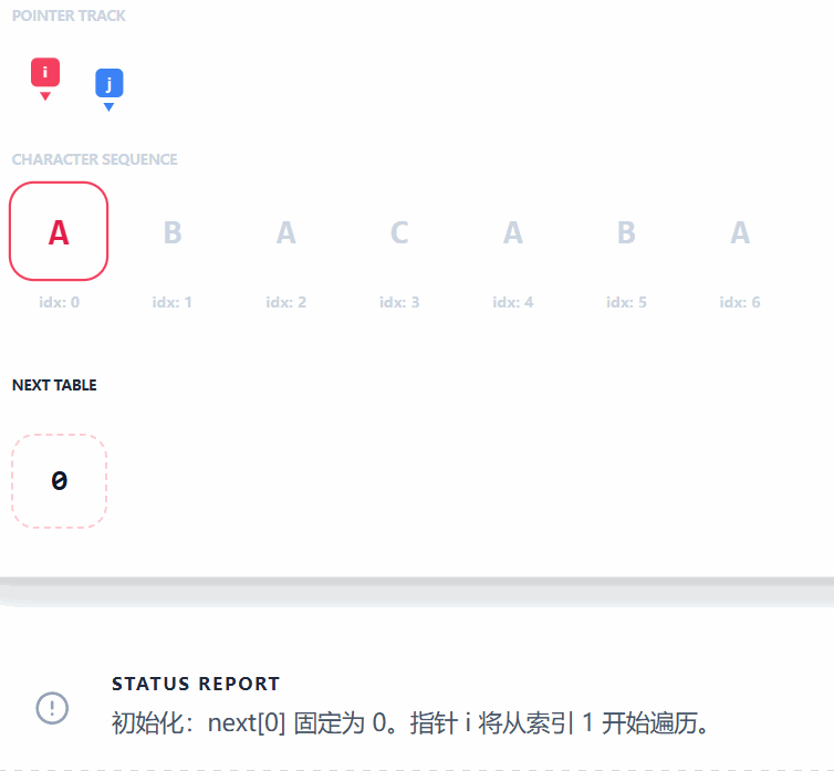 // 这天然确立了 next[0] = 0 的绝对特例(单字符无真前后缀)。